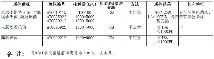 每支添加于225ml HB4186缓冲李氏菌增菌肉汤中 |