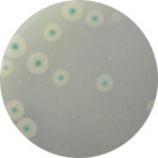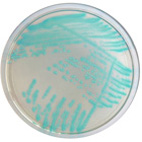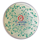 弧菌显色培养基是青岛海博生物公司改良的培养基,用于食品、海产品、病人粪便样品和水产品中副溶血性弧菌的快速检测。副溶血性弧菌显蓝绿色至蓝色,其它弧菌显无色;其它细菌显黄色或无色,且细菌菌落很小。本培养基的特异性高,可以克服TCBS培养基引起的假阴性结果,是一种很理想的快速检测培养基。