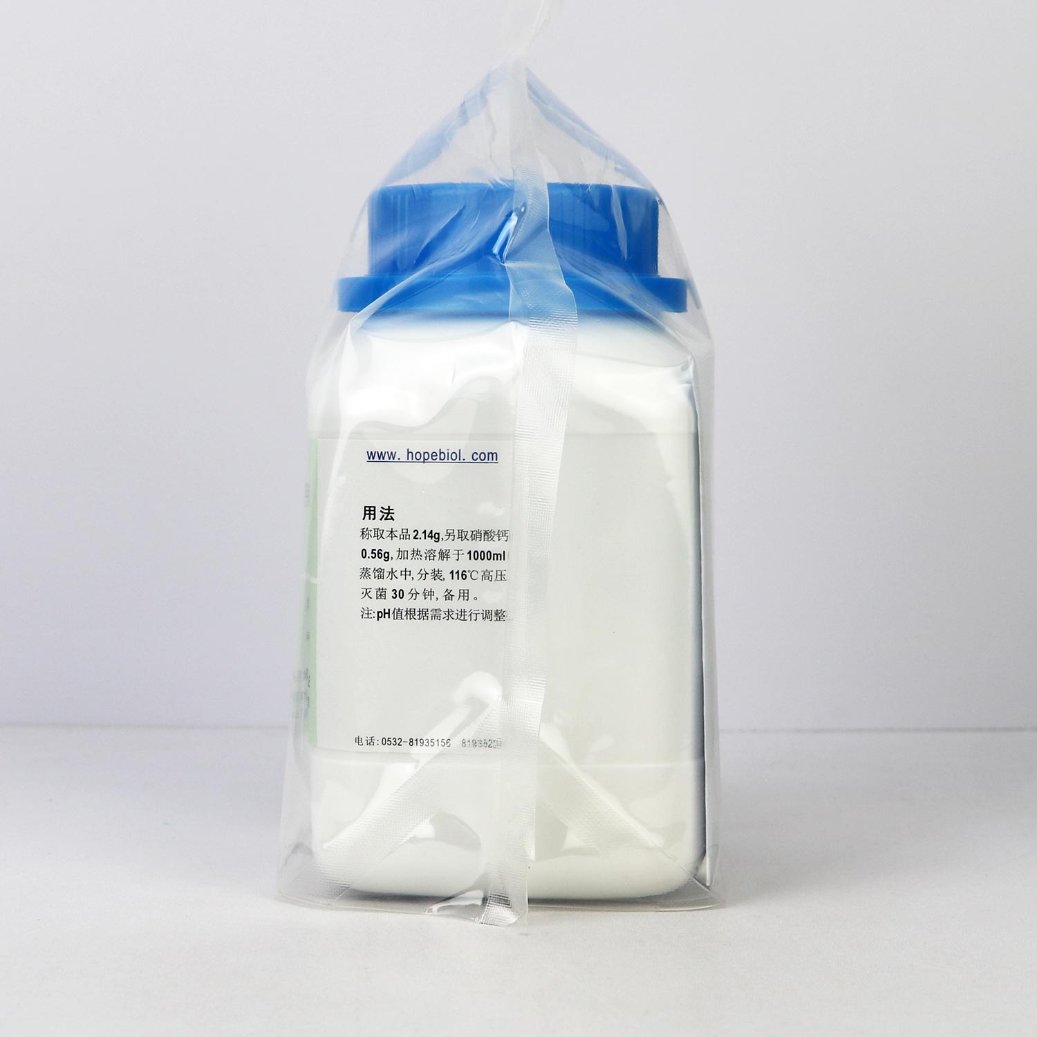 称取本品2.14g,另取硝酸钙0.56g,加热溶解于1000ml蒸馏水中,分装,116℃高压灭菌30分钟,备用。