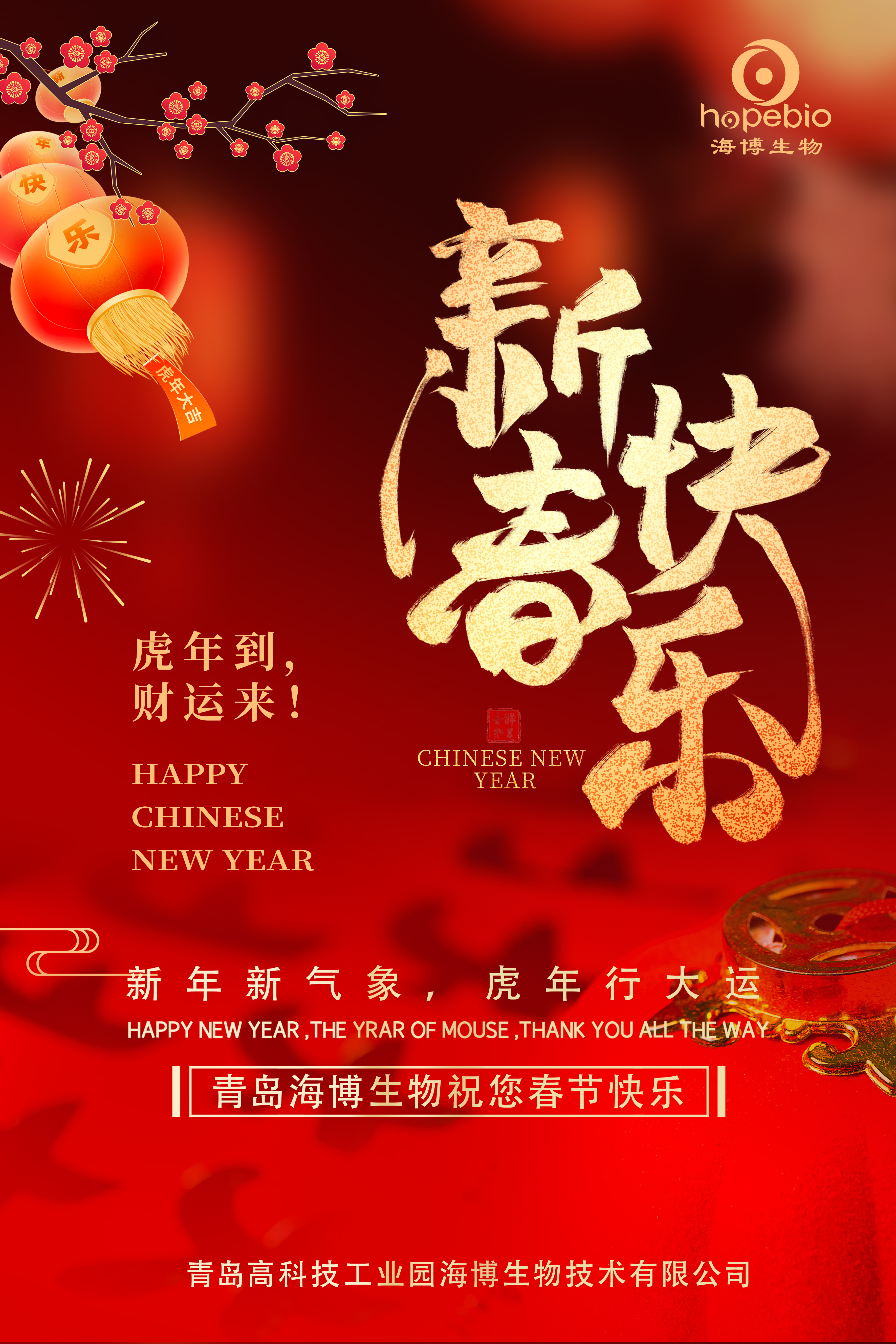 值此新春佳节来临之际,海博生物恭祝您,幸福安康,新年快乐!
