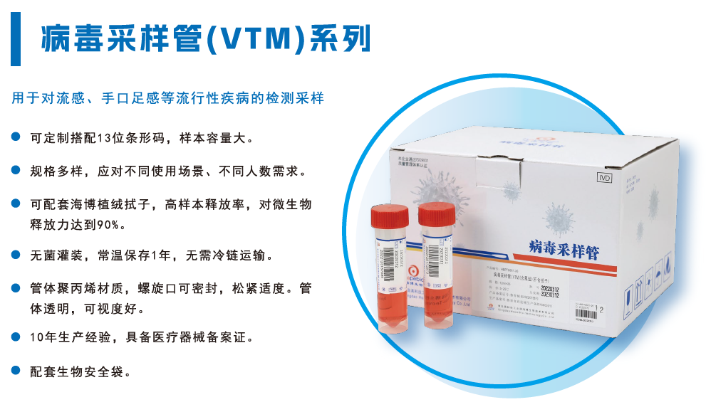 运送保存管、病毒采样管(VTM)系列,多重防护设计,确保样本活性的同时,保证运输零泄漏、零污染。