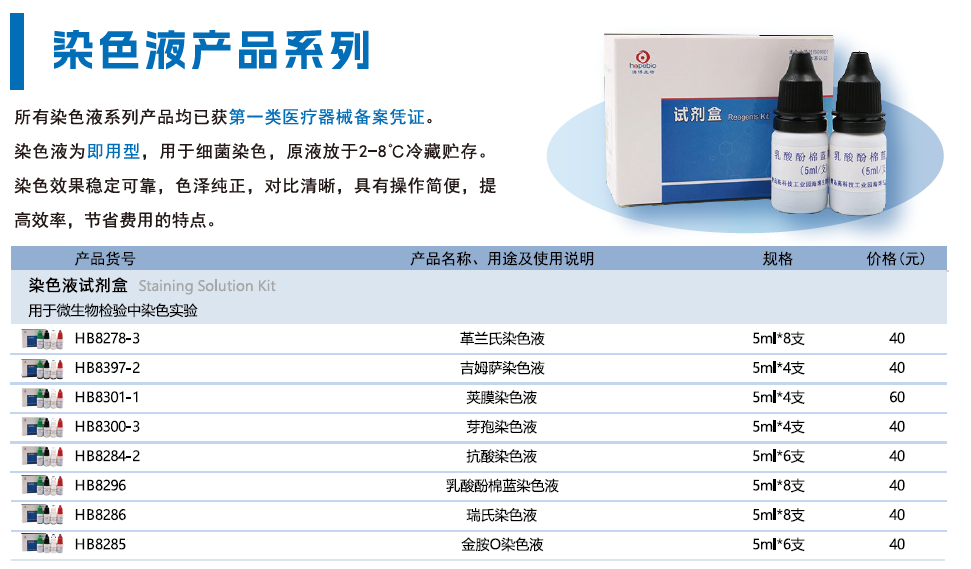 细菌染色,快速精准,涵盖革兰氏染色液,吉姆萨染色液、荚膜染色液等多种常用染色剂,镜检结果清晰易辨,更易判读。