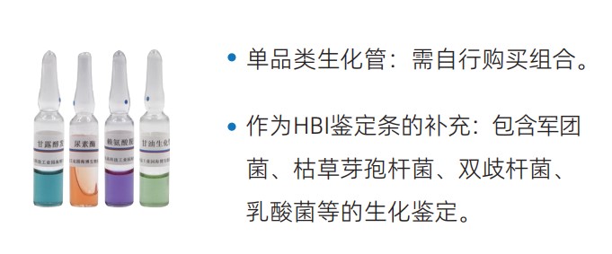 将多项生化反应集成于单一试剂条,无需自行搭配生化管,一条完成全部鉴定试验,省去繁琐的搭配组合生化管的步骤。