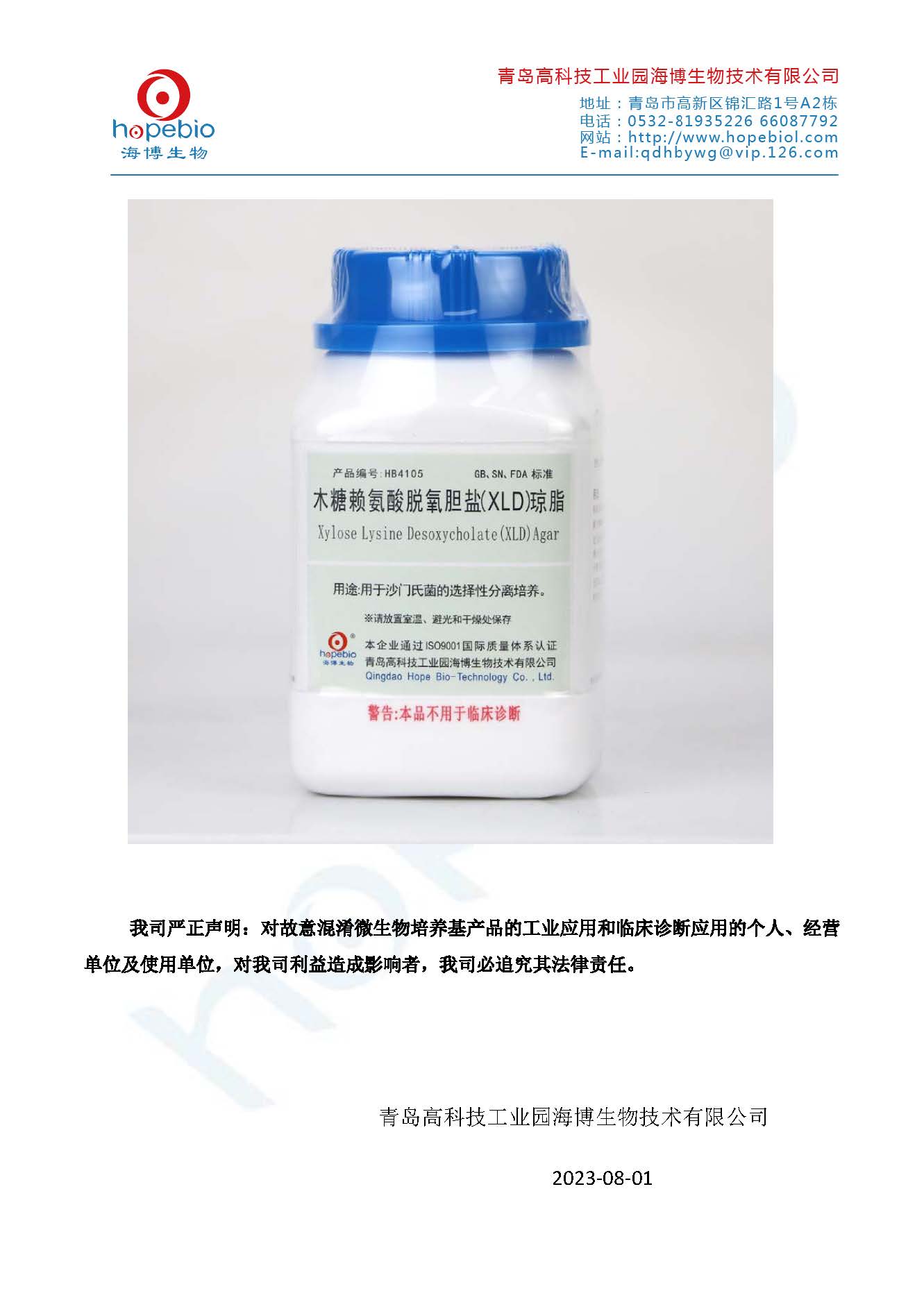 青岛海博培养基变更函(涉及GB4789.4-2024沙门氏菌检验