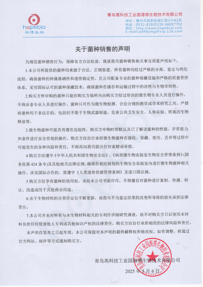 青岛海博-关于2025版《中国药典》中“溴化十六烷基三甲铵琼脂”的pH值范围变更详情函