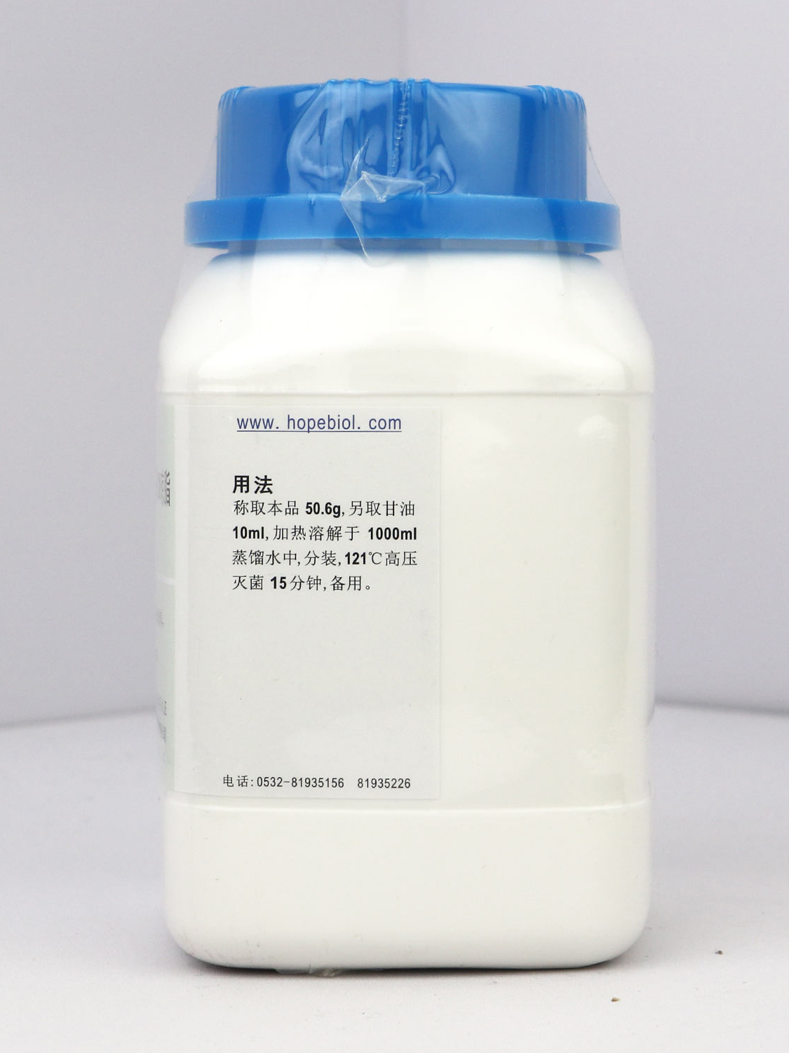 秤取本品50.6g,另取甘油10ml,加热溶解于1000ml蒸馏水中,分装,121℃高压灭菌15分钟,备用。