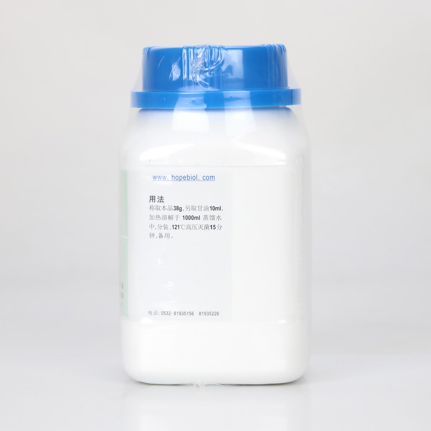 称取本品38g,另取甘油10ml,加热溶解于1000ml蒸馏水中,分装,121℃高压灭菌15分钟,备用。