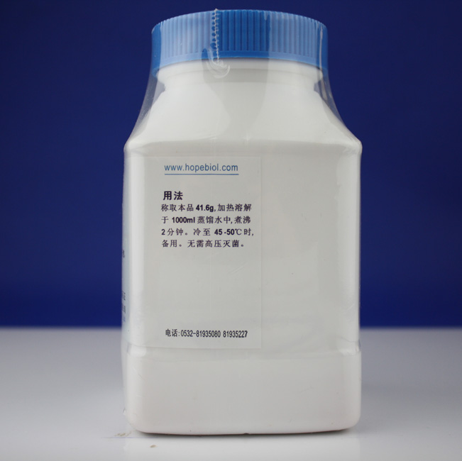 称取本品 41.6g,加热溶解于 1000ml 蒸馏水中,煮沸2 分钟。冷至 45 -50℃时,备用。无需高压灭菌。