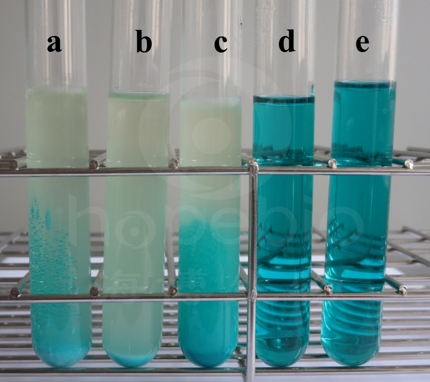称取本品33.5g,加热搅拌溶解于1000ml蒸馏水中,于沸水中加热30分钟,迅速冷却培养基分装于试管中,每管10ml,备用。无需高压灭菌。