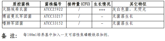 按标签用法制备培养基,接种以下质控菌株,放置36±1℃需氧培养72-168小时。