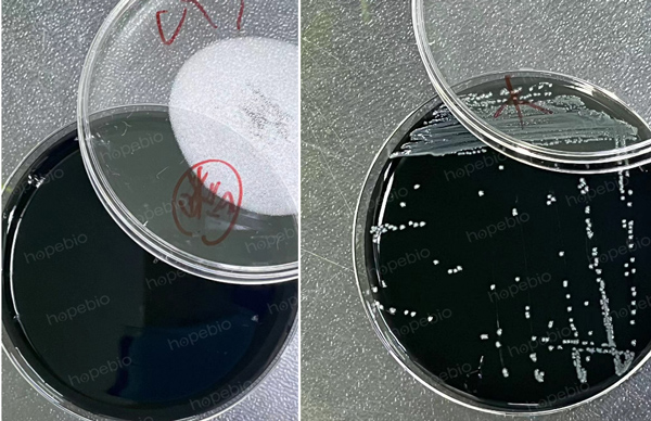 注:培养基中含不溶性活性炭,整体培养基呈黑色。