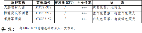 按标签用法制备培养基,接种以下质控菌株,放置36±1℃需氧培养168小时。