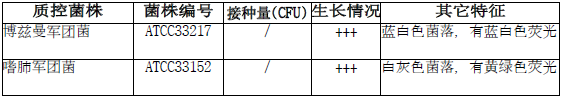 按标签用法制备培养基,接种以下质控菌株,放置36±1℃需氧培养72-168小时。