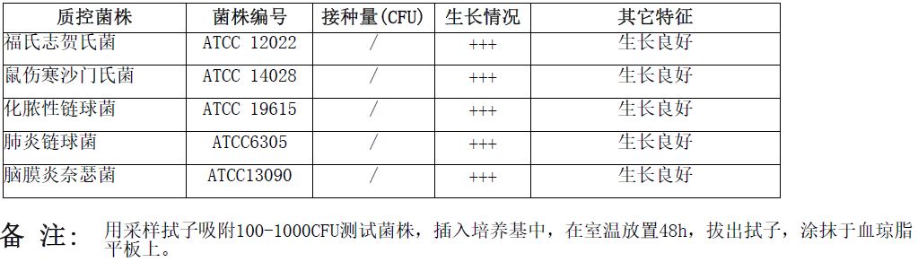 按标签用法制备培养基,接种以下质控菌株,放置20-25℃需氧培养48小时。