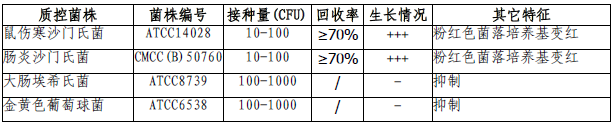 煌绿琼脂培养基(USP标准)微生物灵敏度试验: