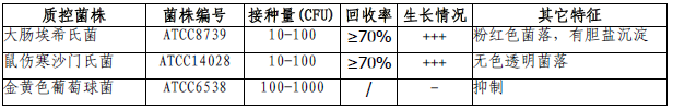 麦康凯琼脂培养基(USP标准)微生物灵敏度试验: