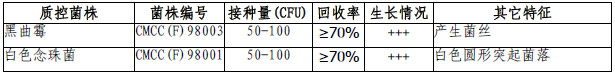 按标签用法制备培养基,接种以下质控菌株,放置20-25℃需氧培养48-72小时。