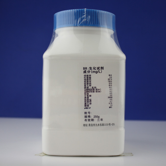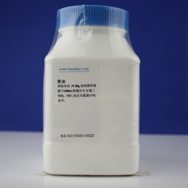 称取本品21.26克,加热搅拌溶解于1000ml蒸馏水中,分装三角瓶,115℃高压灭菌20分钟备用。