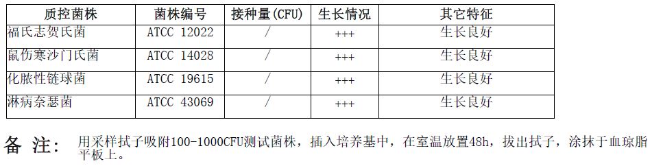 按标签用法制备培养基,接种以下质控菌株,放置20-25℃需氧培养48小时。