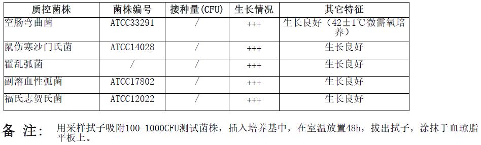 按标签用法制备培养基,接种以下质控菌株,放置20-25℃需氧培养48小时。