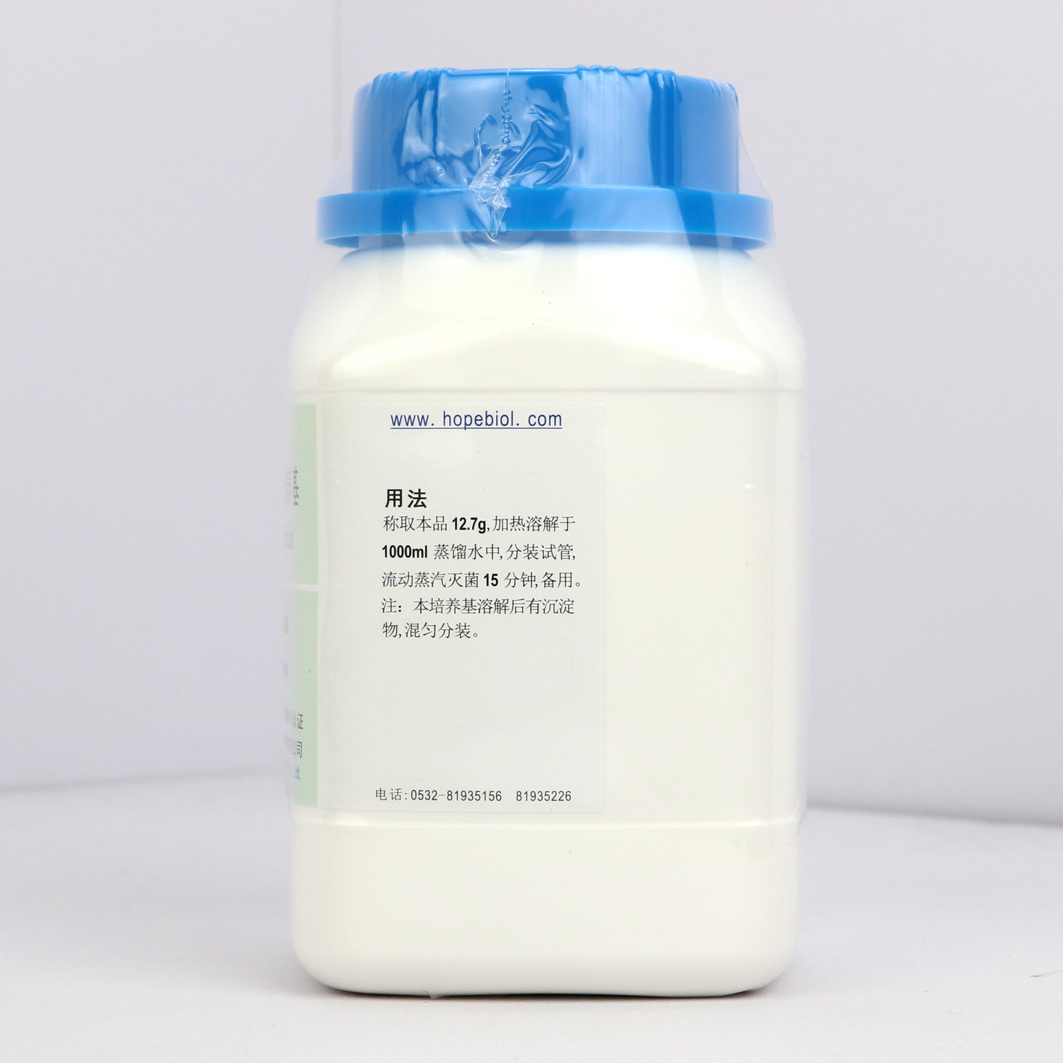 称取本品12.7g,加热溶解于1000ml蒸馏水中,分装试管,流动蒸汽灭菌15分钟,备用。