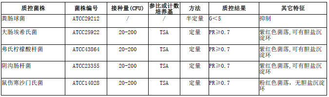 结晶紫中性红胆盐琼脂(VRBA)微生物灵敏度: