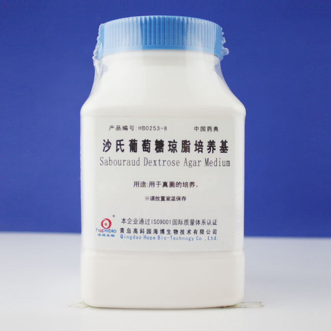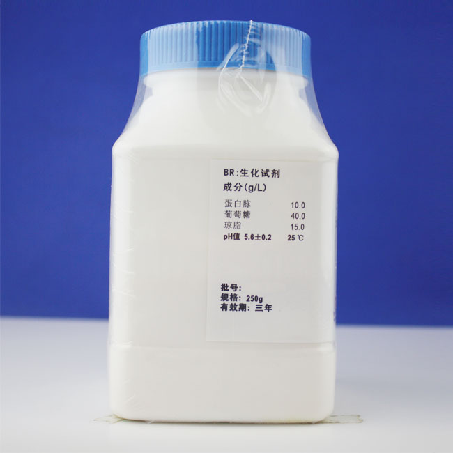 用途:用于真菌的培养。 成分(g/L) 蛋白胨 10.0 葡萄糖 40.0 琼脂 15.0 pH值 5.6±0.2 25 ℃ 用法 称取本品 65.0g,加热搅拌溶解于 1000ml 纯化水(或蒸馏水)中,121℃高压灭菌15 分钟,冷却至 50℃左右时,倾入无菌平皿,备用 。