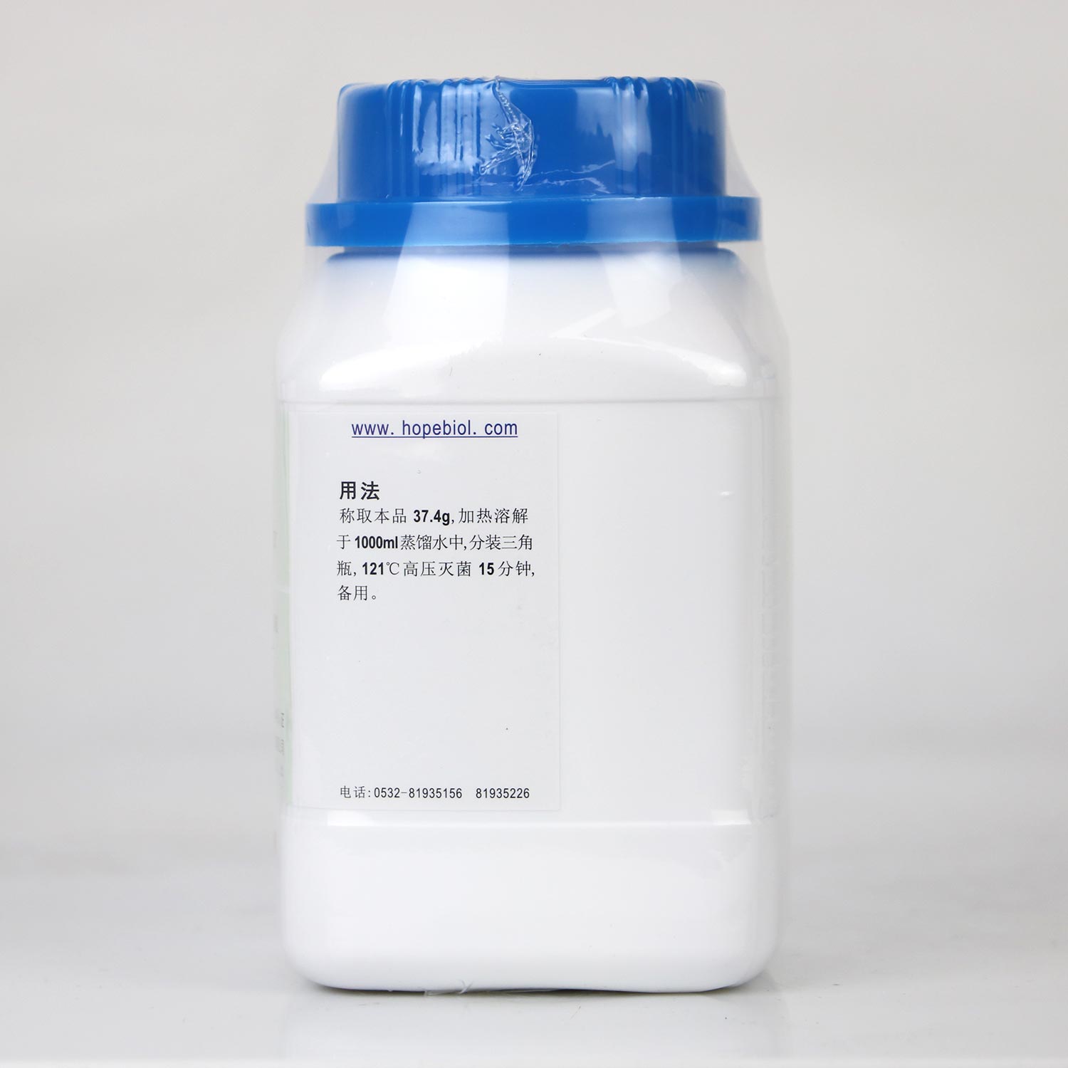 称取本品37.4g,加热溶解1000ml蒸馏水中,分装三角瓶,121℃高压灭菌15分钟,备用。