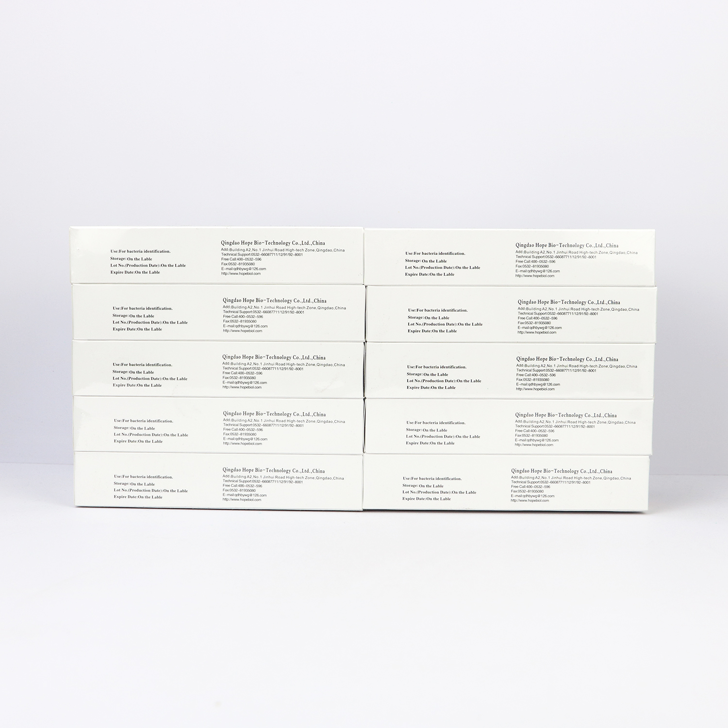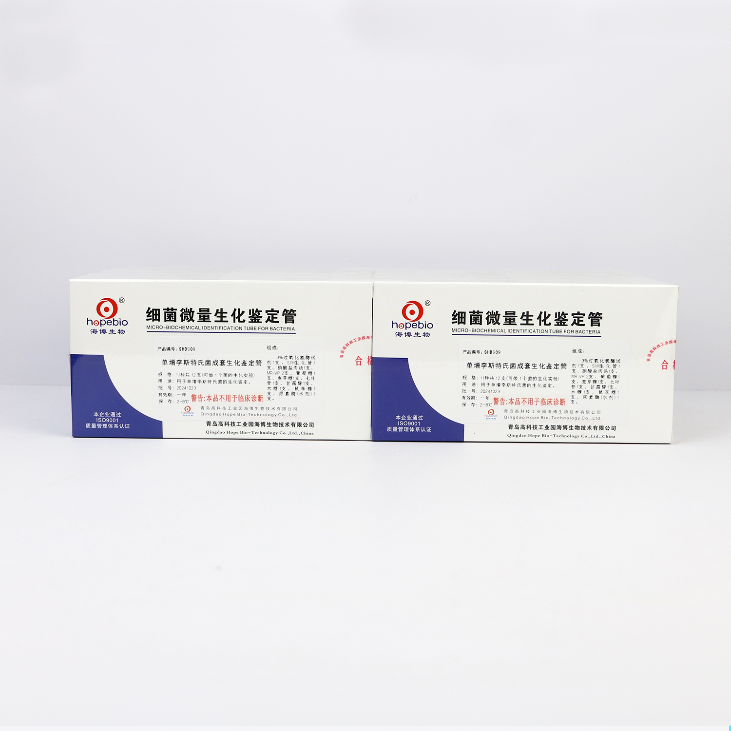 3%过氧化氢酶试剂2支,SIM生化管2支,硝酸盐肉汤2支,MR-VP 4支,葡萄糖2支、麦芽糖2支、七叶苷2支、甘露醇2支、木糖2支、鼠李糖2支、尿素酶2支。