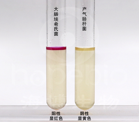 某些细菌能分解蛋白胨中的色氨酸,生成吲哚。吲哚的存在可用显色反应表现出来。吲哚与对二甲氨基苯甲醛结合,形成玫瑰吲哚,为红色化合物。