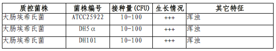 按标签用法制备培养基,接种以下质控菌株,放置36±1℃需氧培养18-24小时。
