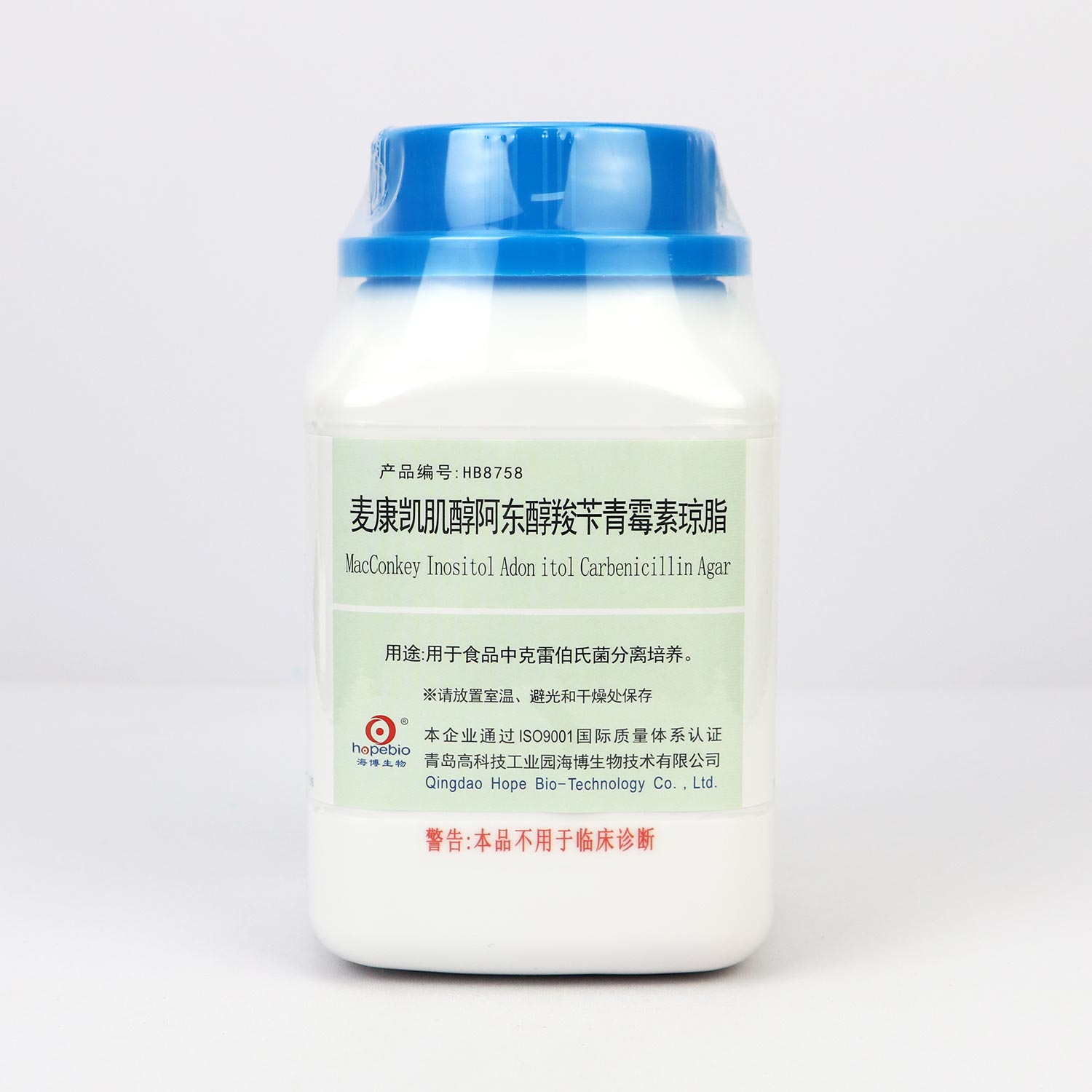 每支添加于200ml麦康凯肌醇阿东醇羧苄青霉素琼脂中 |