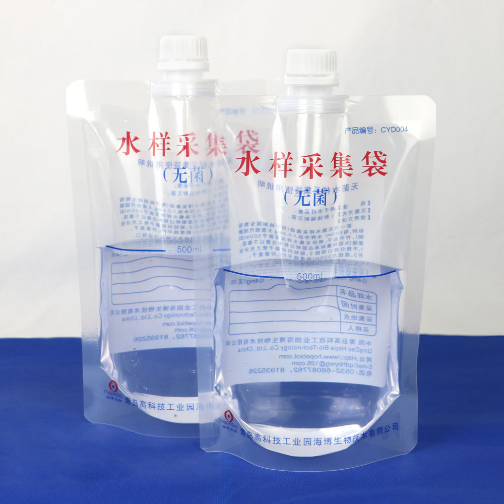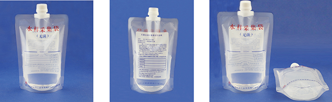 1.本产品内部为无菌状态,使用时拧开盖子接取水样至刻度线,然后拧紧盖子,送往实验室检验即可。袋子设计为圆底立式,展开袋子底部可使采样袋保持站立状态。袋子背面有书写位置,采样后可在背面用记号笔书写采样的地点、时间、采样人、编号等信息。