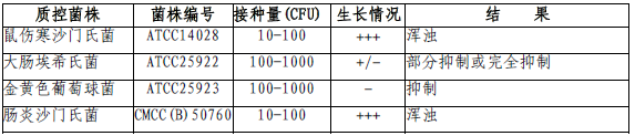 接种以下质控菌株,放置42±1℃需氧培养18-24小时。