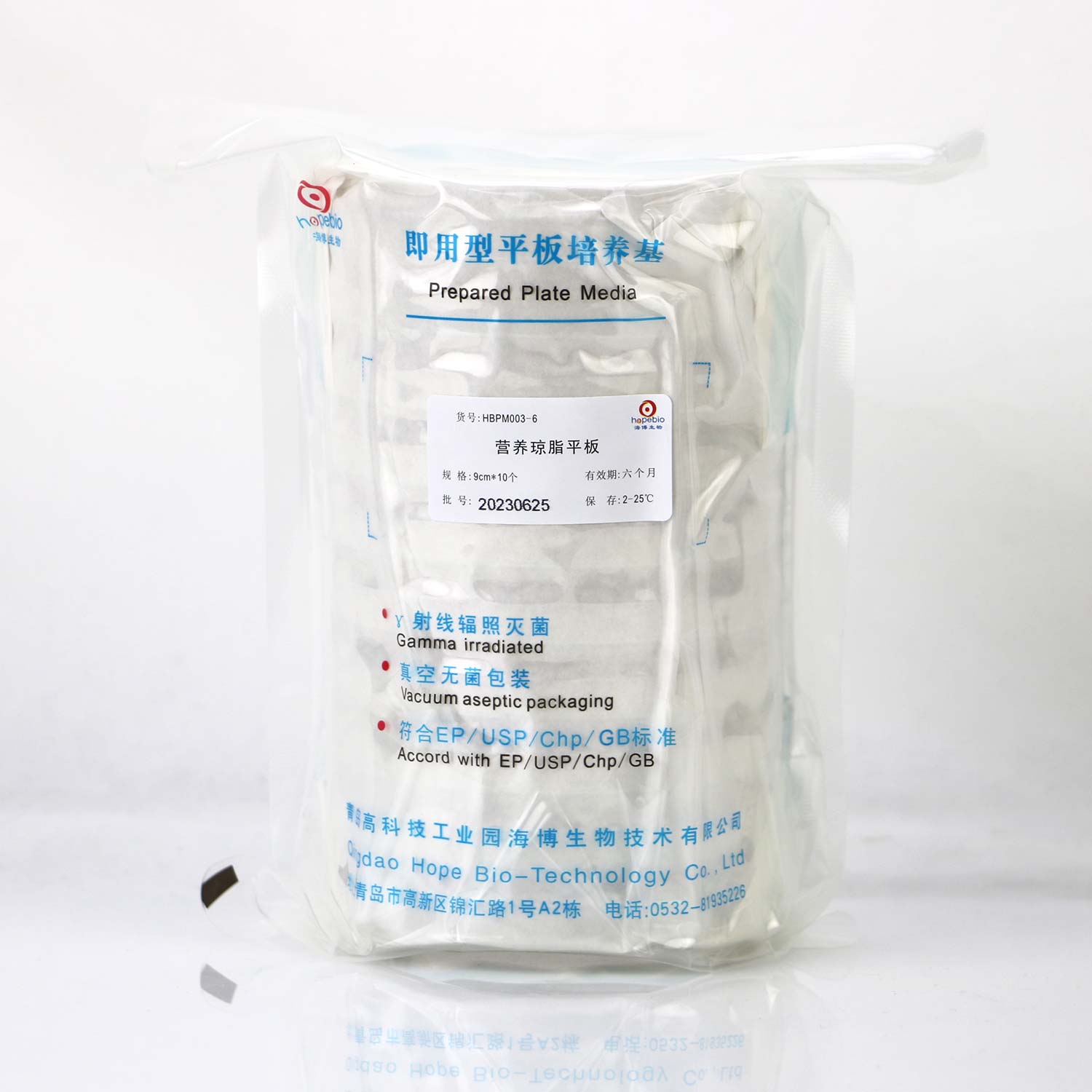 包装方式:一次性无菌塑料平皿 9cm 辐照灭菌。