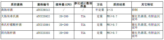 结晶紫中性红胆盐琼脂平板(9cm)微生物灵敏度试验: