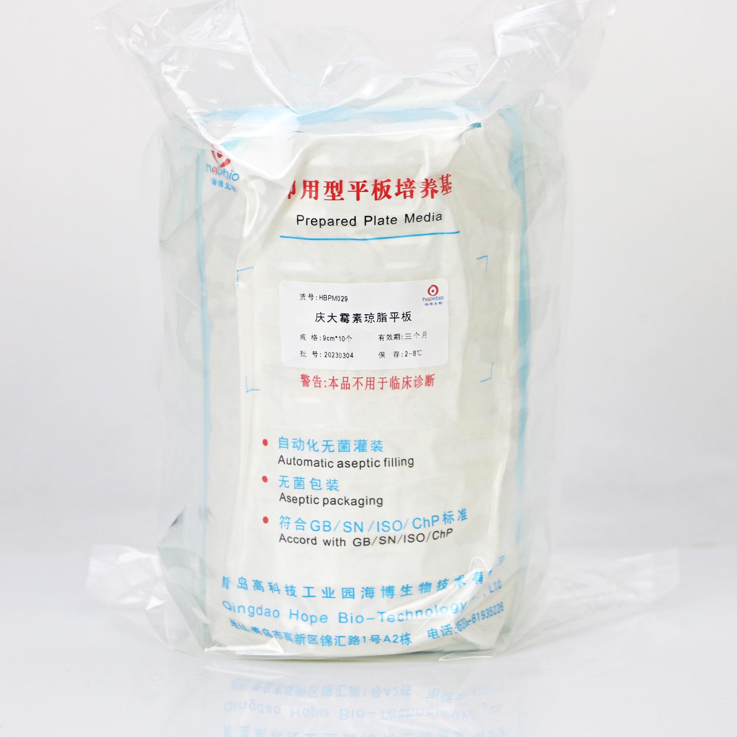 包装方式:一次性无菌塑料平皿 9cm