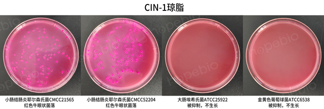CIN-1琼脂平皿的微生物灵敏度试验: