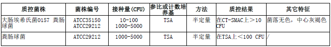 按标签用法制备培养基,接种以下质控菌株,放置36±1℃需氧培养18-24小时。