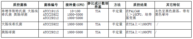 按标签用法制备培养基,接种以下质控菌株,放置30±1℃需氧培养18-24小时。