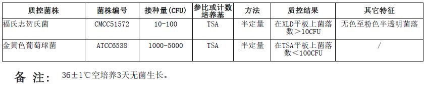 含225ml志贺氏菌增菌肉汤均质袋(含添加剂)微生物灵敏度试验:
