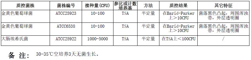 按标签用法制备培养基,接种以下质控菌株,放置36±1℃需氧培养18-24小时。
