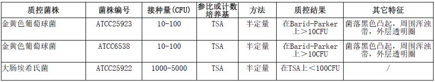 按标签用法制备培养基,接种以下质控菌株,放置36±1℃需氧培养18-24小时。