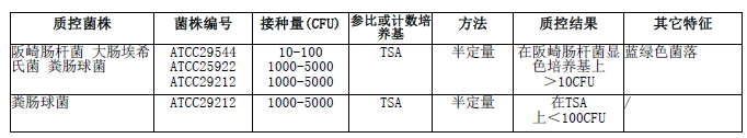 按标签用法制备培养基,接种以下质控菌株,放置44±0.5℃需氧培养24±2小时。
