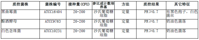 马铃薯葡萄糖琼脂(PDA)(颗粒)袋微生物灵敏度试验: