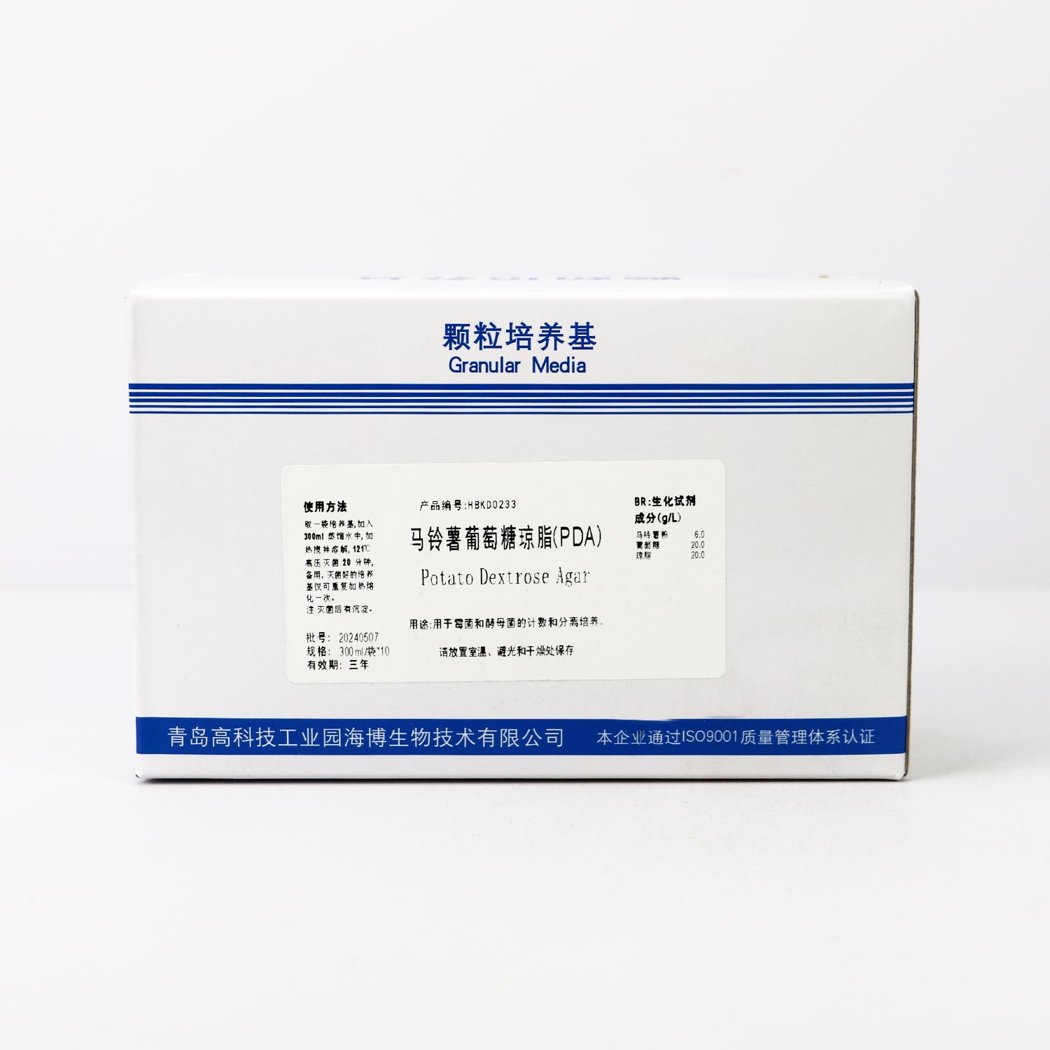 注:培养基中使用的马铃薯浸粉中含有较多淀粉类成分,灭菌后的培养基稍浑浊,可能出现少量白色沉淀,摇匀倒平板即可。灭菌前加热煮沸溶解培养基再进行灭菌不易出现沉淀。