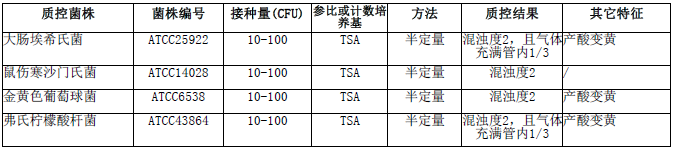 按标签用法制备培养基,接种以下质控菌株,放置36±1℃需氧培养24±2小时。