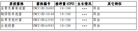 按标签用法制备培养基,接种以下质控菌株,放置30-35℃需氧培养72小时。