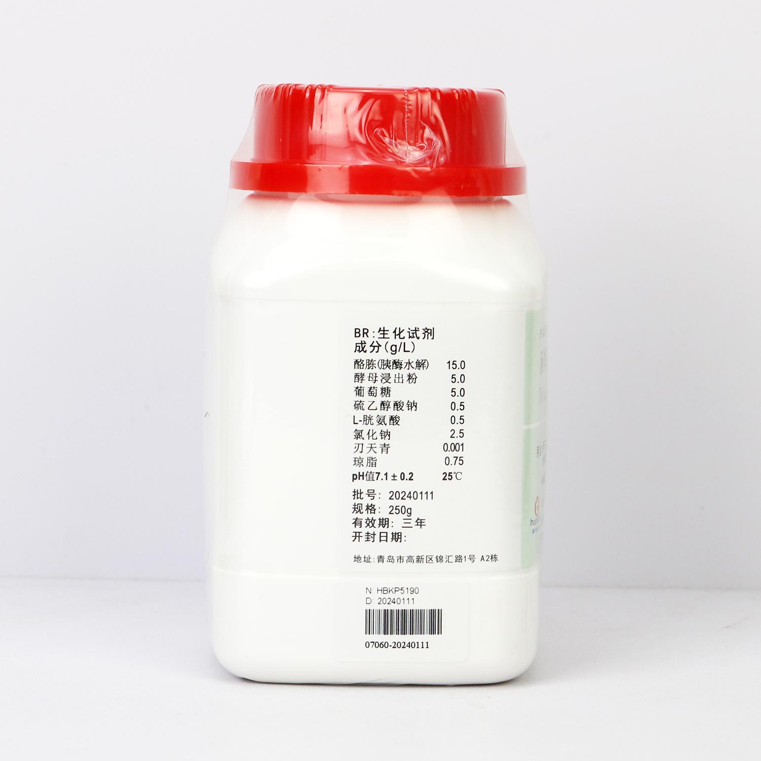 酪胨(胰酶水解) 15.0 酵母浸出粉 5.0 葡萄糖 5.0 硫乙醇酸钠 0.5 L-胱氨酸 0.5 氯化钠 2.5 刃天青 0.001 琼脂 0.75 pH值7.1 ± 0.2 25℃