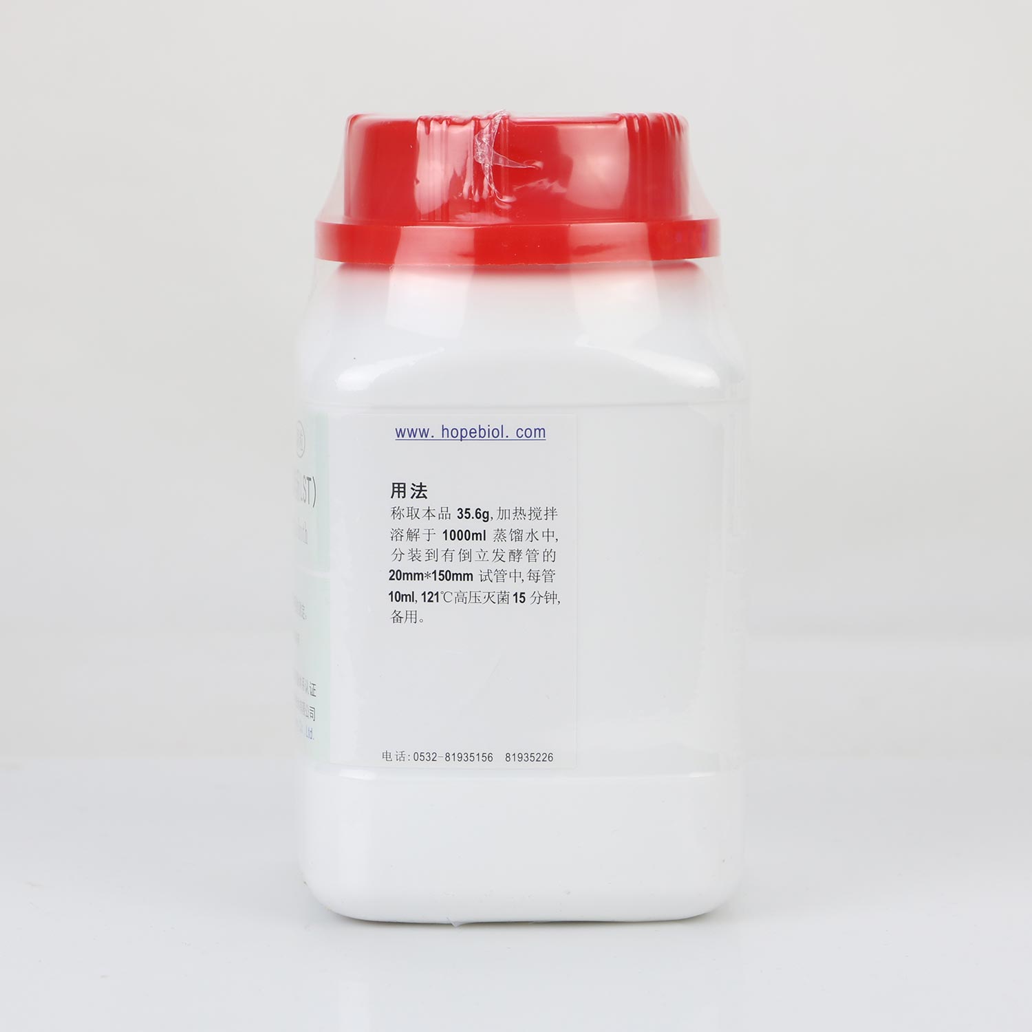 称取本品35.6g, 加热搅拌溶解于1000ml 蒸馏水中,分装到有倒立发酵管的20mm*150mm试管中,